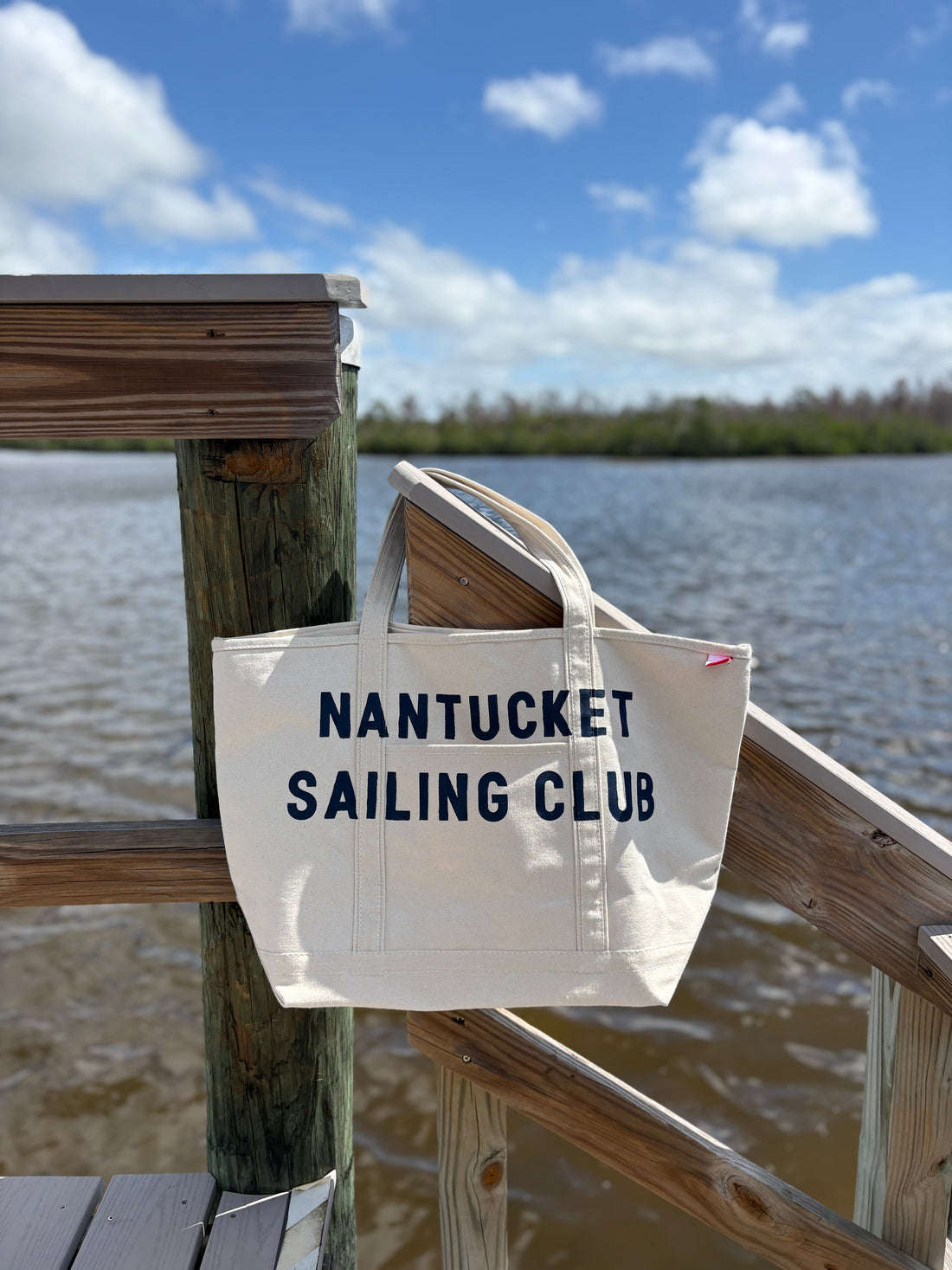 Nantucket Sailing Club hand-painted large rope tote